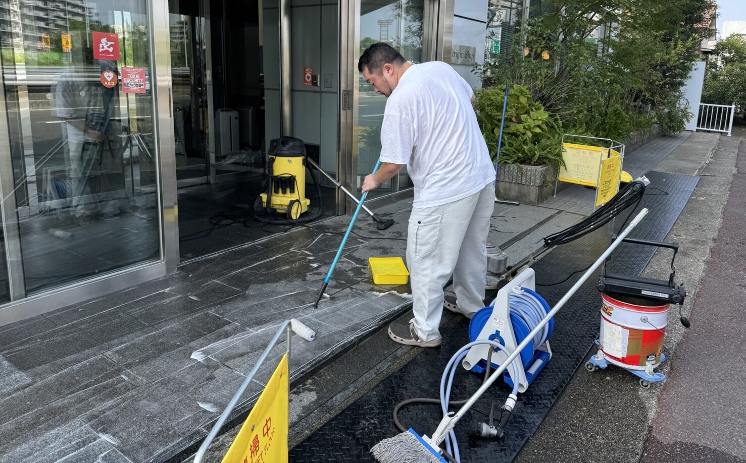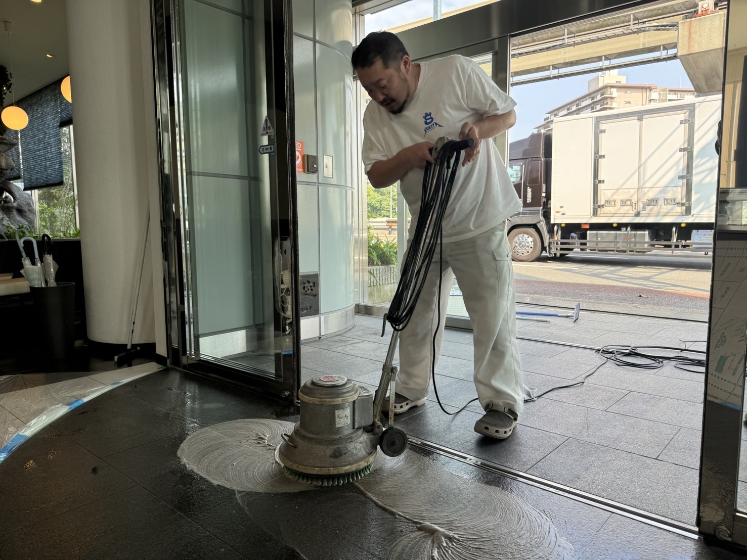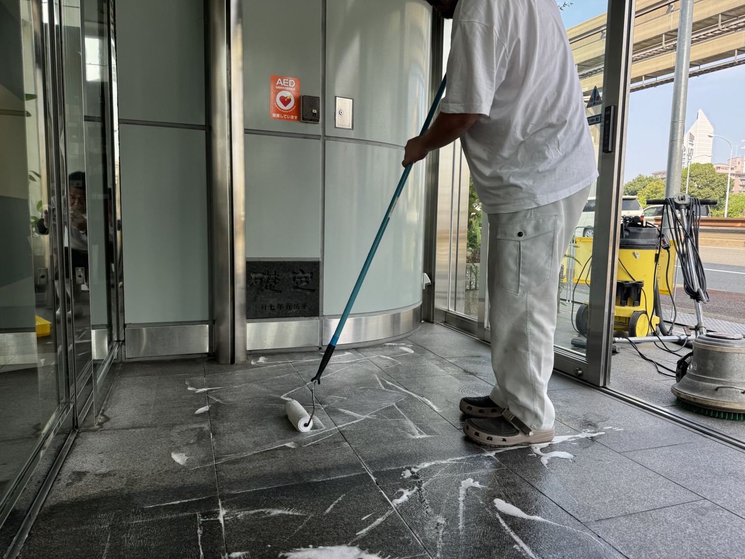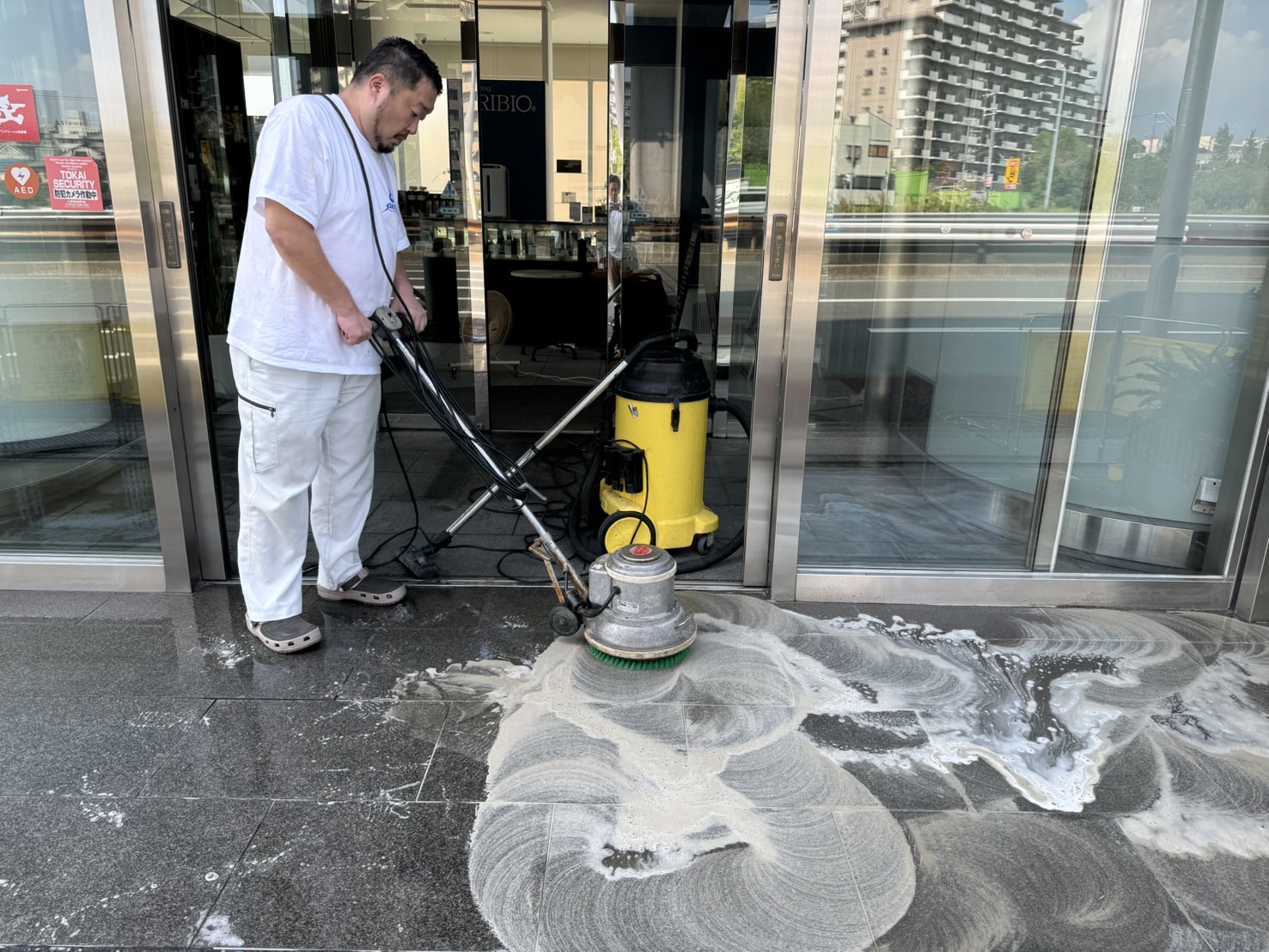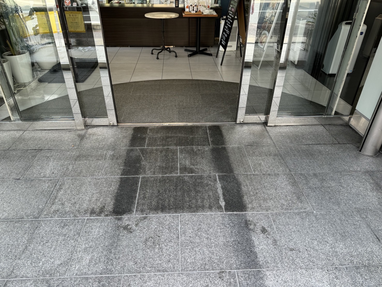 カフェエントランスの洗浄とコーティング【御影石メンテナンス】