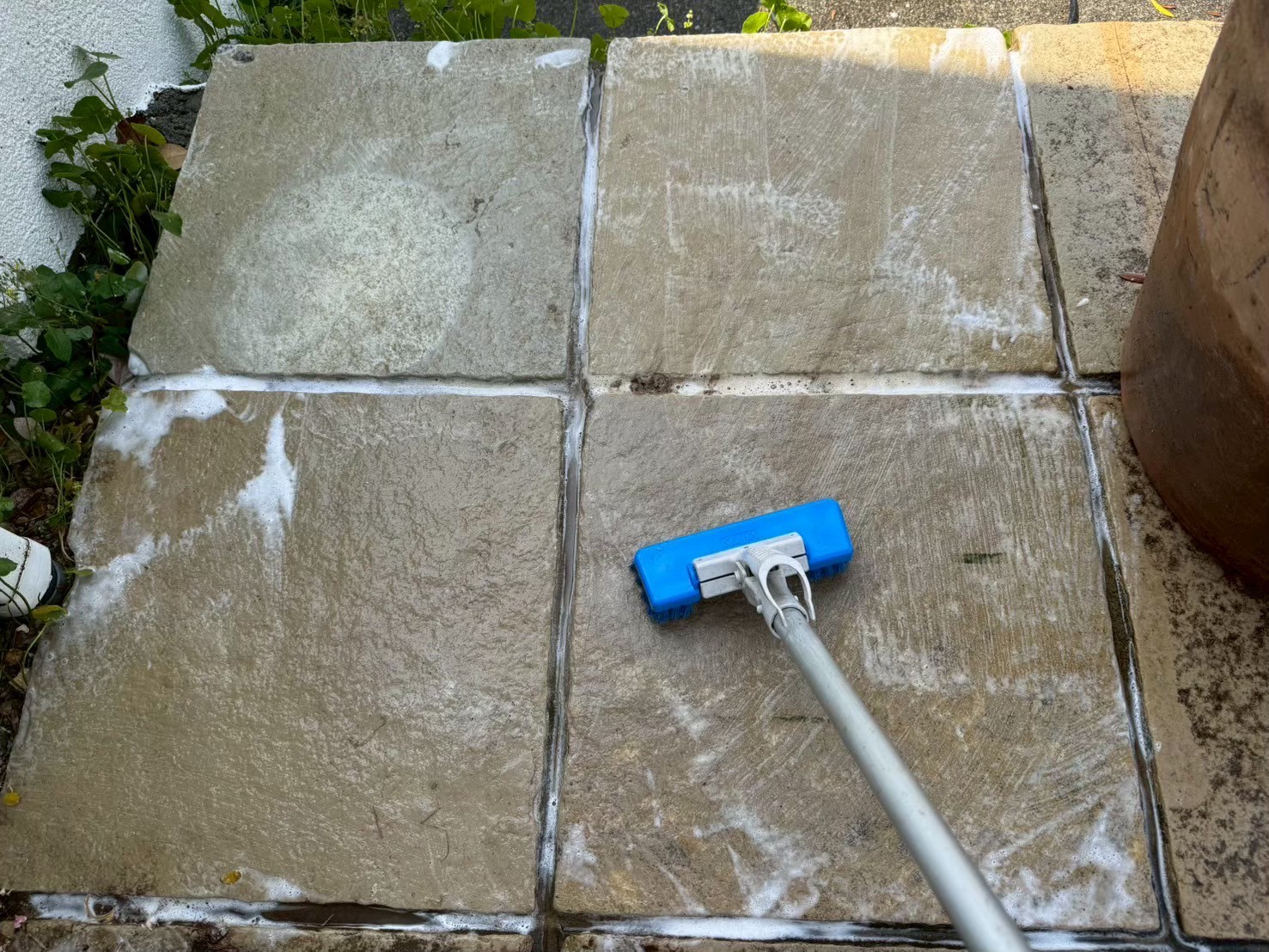 高圧洗浄だけでは落ちない汚れに|石材玄関ポーチ施工事例