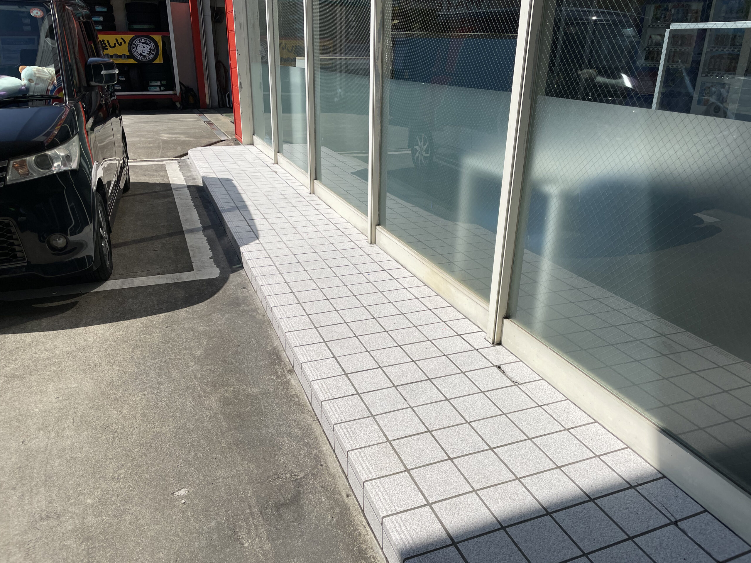 こちらは、弊社の拠点である三重県鳥羽市内のガソリンスタンドにある屋外に設置されているタイルです。