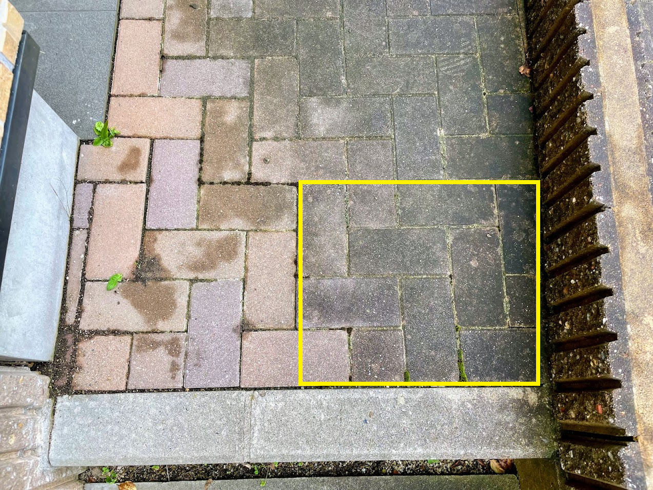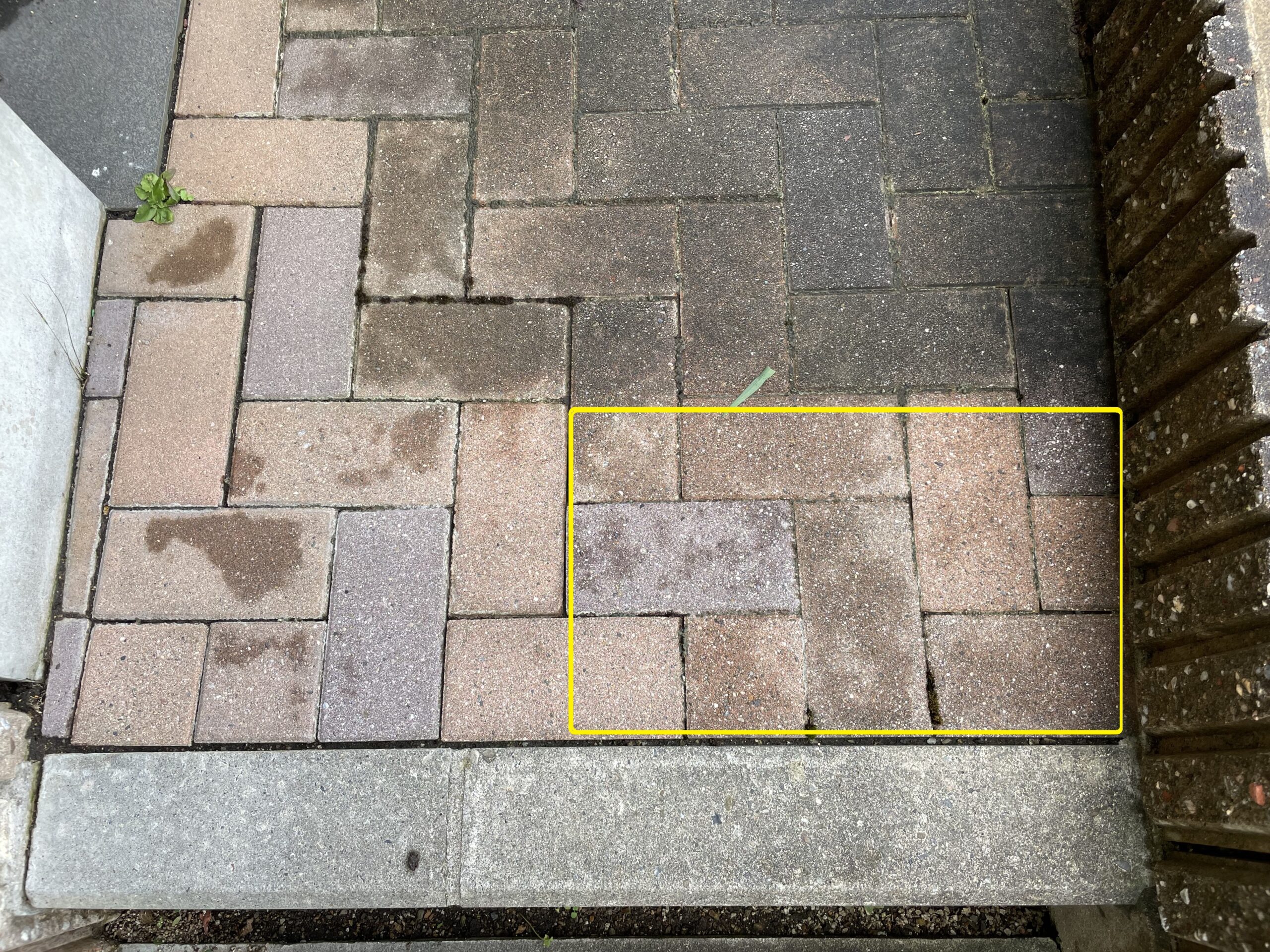 お客様からご依頼いただいたのは、高圧洗浄機でも落ちなかった、インターロッキングの汚れです。