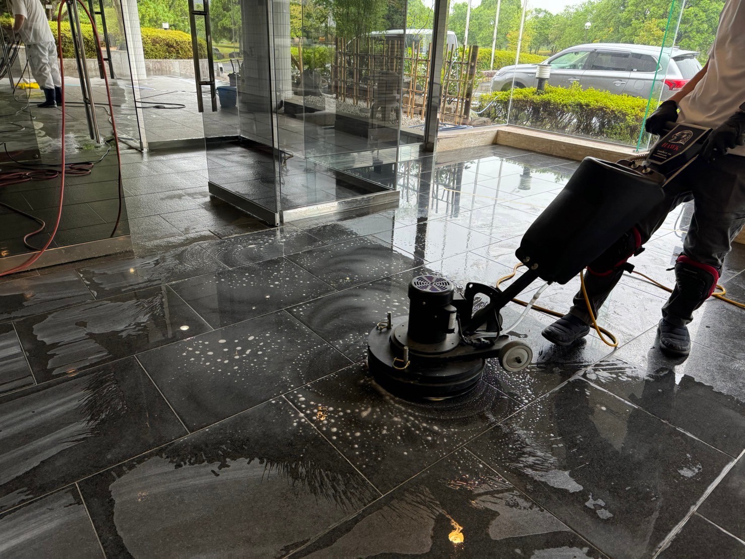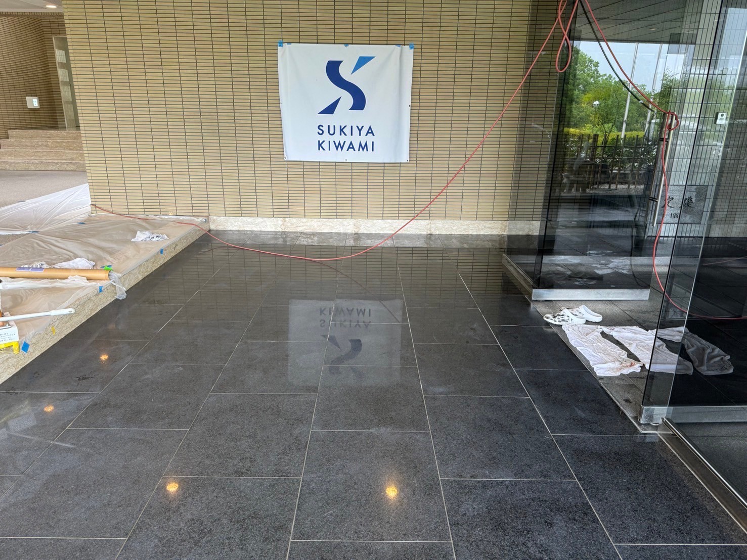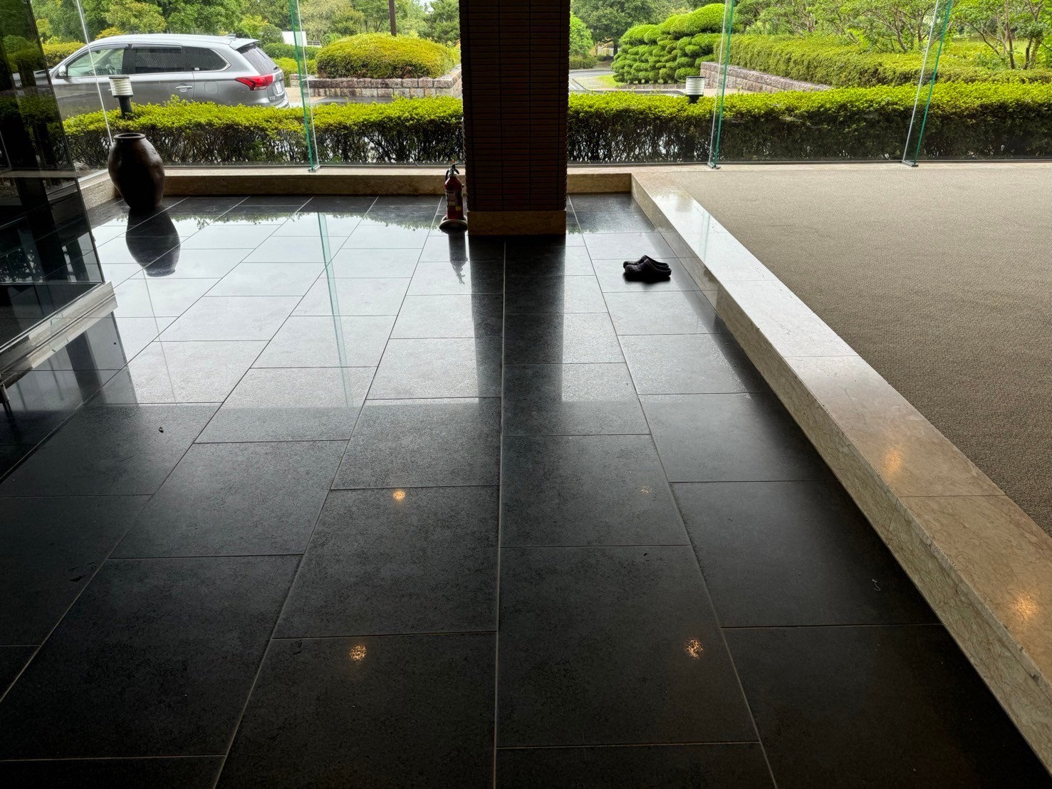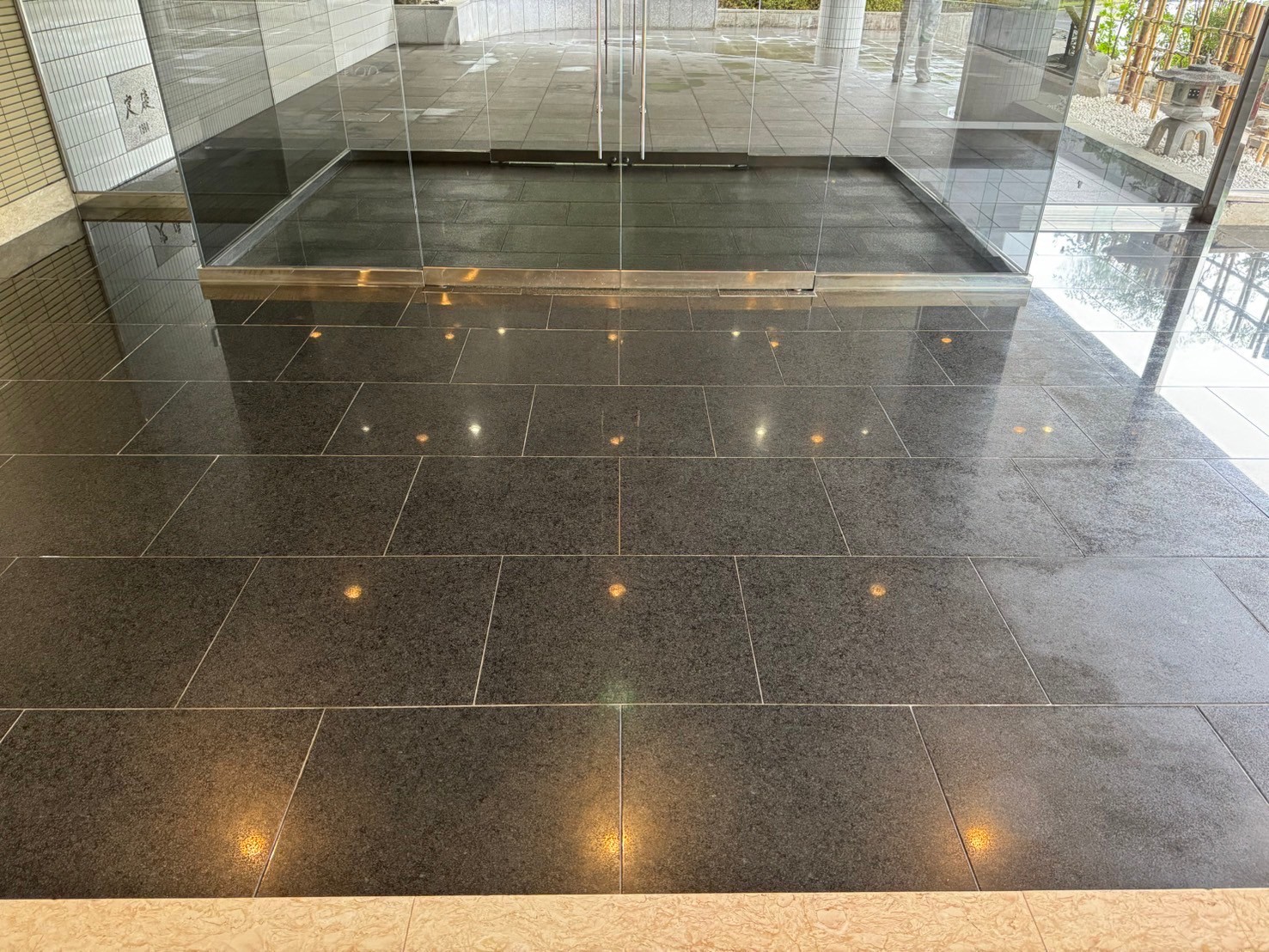 今回は、前回ご紹介した同じ現場で、風除室から玄関ホールまでの御影石メンテナンスを行いましたので、その様子についてお伝えしたいと思います。